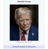 Президент США Дональд Трамп опубликовал изображение, оформленное в виде биографической справки, в которой указано, что он занимает должность исполняющего обязанности президента Венесуэлы.