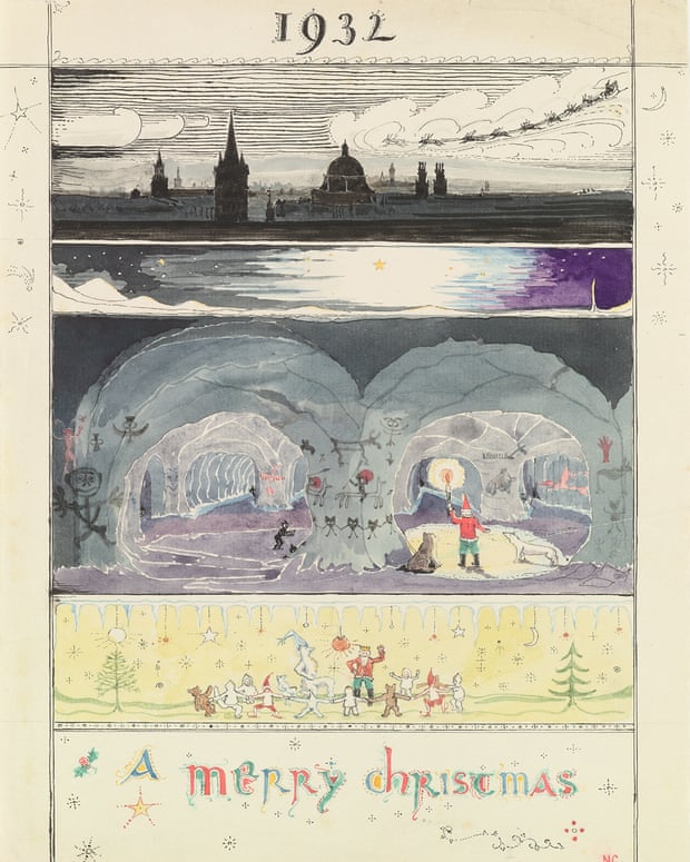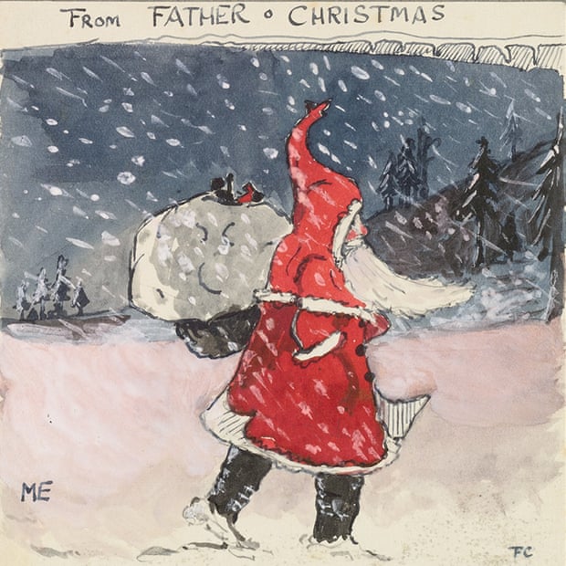 Все письма сопровождались трогательными картинками – по мере усложнения истории, в ней появились новые герои: белый медведь, гоблины, гномы. В некоторых приключениях можно угадать будущих героев «Властелина колец» - например, медведь попадал в подземную страну, где знакомился с гномами. Рисунки все проникнуты большой любовью и сделаны мастерски, полагает куратор выставки Кэтрин МакВиллан. С помощью картин Толкиен рассказывал детям и о мире, и о событиях, происходивших в нем – например, в 1926 году медведь случайно попал на Северное сияние и делился своими впечатлениями.